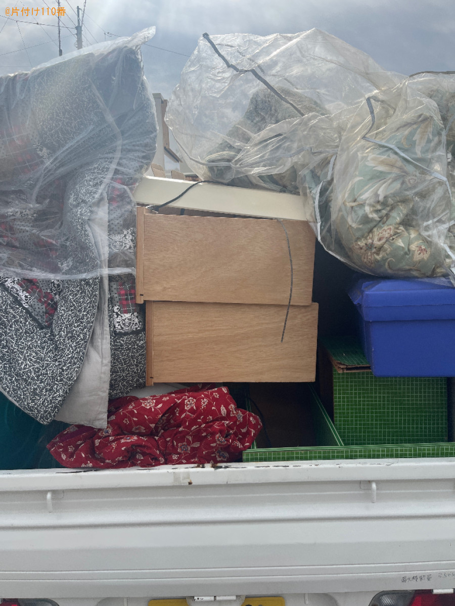 | 担当のコメント | 掃除機、マットレス、ダンボール等の処理にお困りのお客様からご相談いただきました。指定日に回収可能なことがご依頼の決め手になったようです。片付け110番では、最短即日のお伺いが可能です。不用品にお困りの際はまたいつでもご相談ください。 |